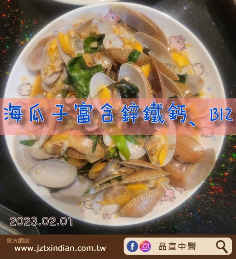 - 鈣-除了牛奶、小魚干能補鈣外,也能多吃海瓜子,台灣人一般用快炒料理,不妨做成味噌湯,建議加適量的醋,海瓜子殼會溶出鈣質,可增加3倍的鈣質攝取。