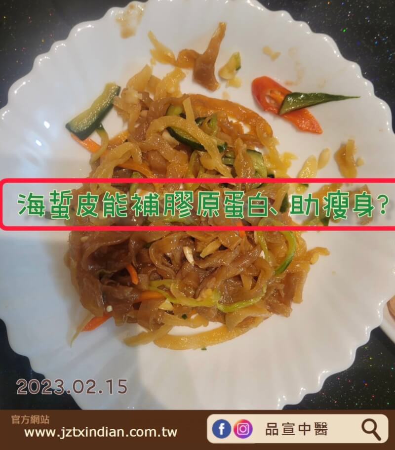 海蜇皮含豐富的膠質,適度食用能維持肌膚彈性;其食用後易有飽足感的特性,適合想瘦身的民眾做為飯前小菜,來減少後續用餐的進食量。