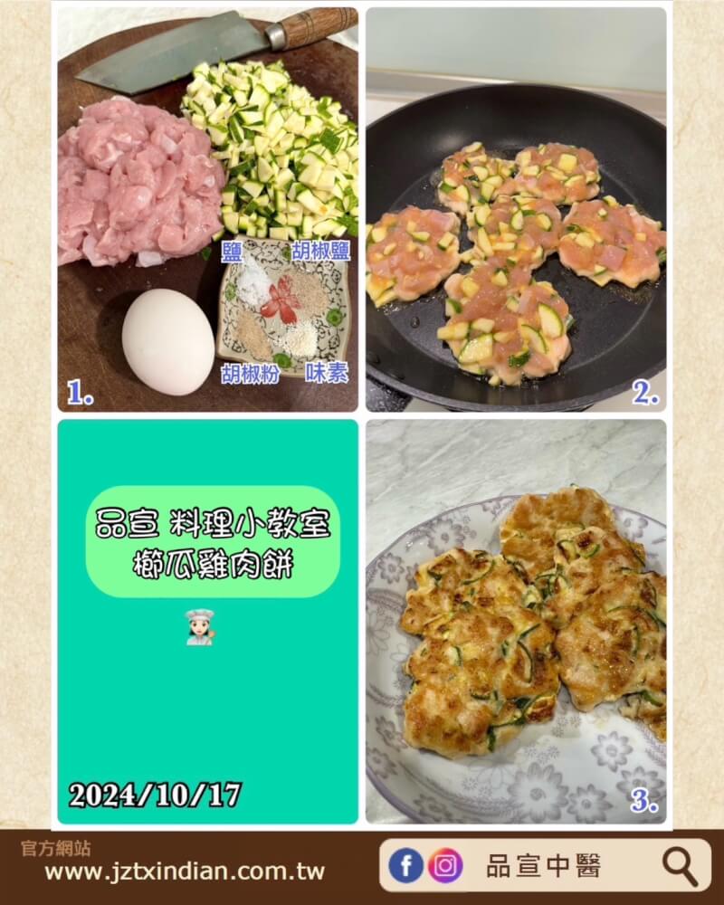 3.雞胸肉.櫛瓜混合調味料後視黏性添加少量太白粉